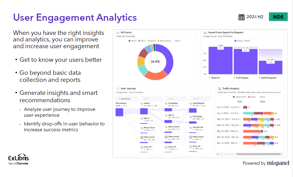 Once you are on the NDE, Mixpanel will be how you get Primo usage data. Your old data will still be available via Primo Analytics (OBI). Primo Analytics (OBI) The Example Dashboard In Alma, Choose Analytics from the menu on the left Choose Access ...
